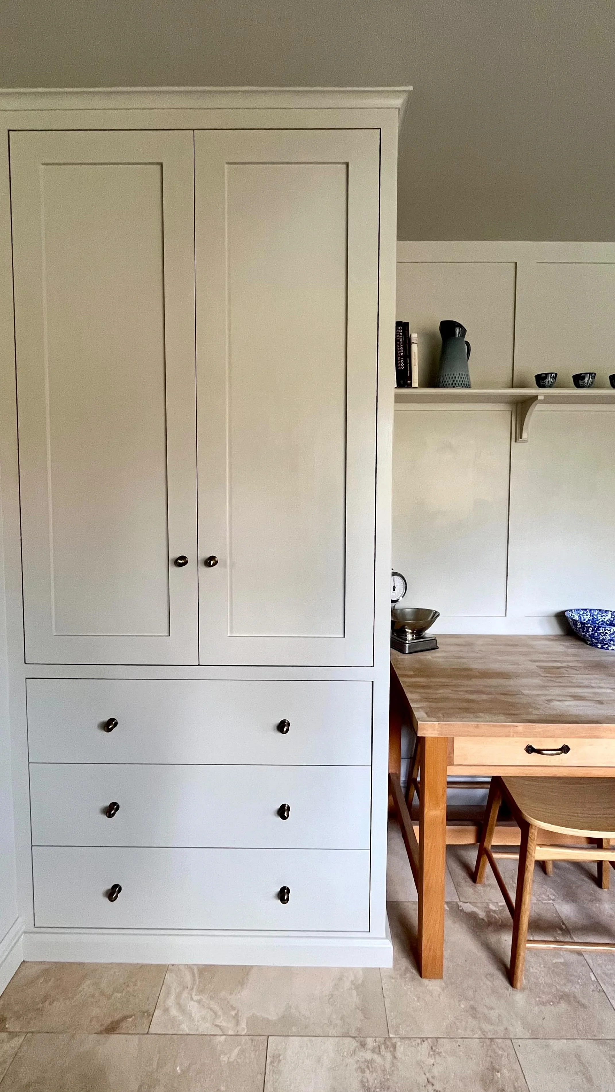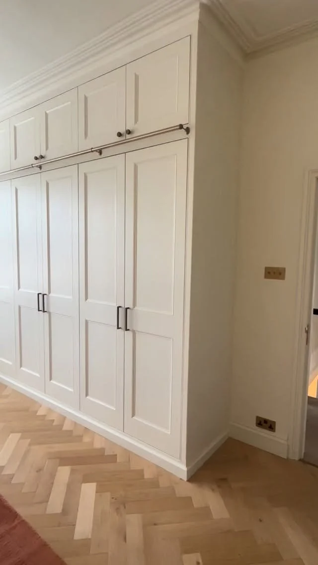 We specialise in bespoke carpentry including fitted wardrobes, alcove units, shelving and storage, made on-site to fit your room. From contemporary modern clean lines, to mid-century style staggered boxes or traditional Victorian, Georgian or Regency style units, we can work to your drawings or help with the design. Our finished work is painted by hand, in any colour to fit your scheme.