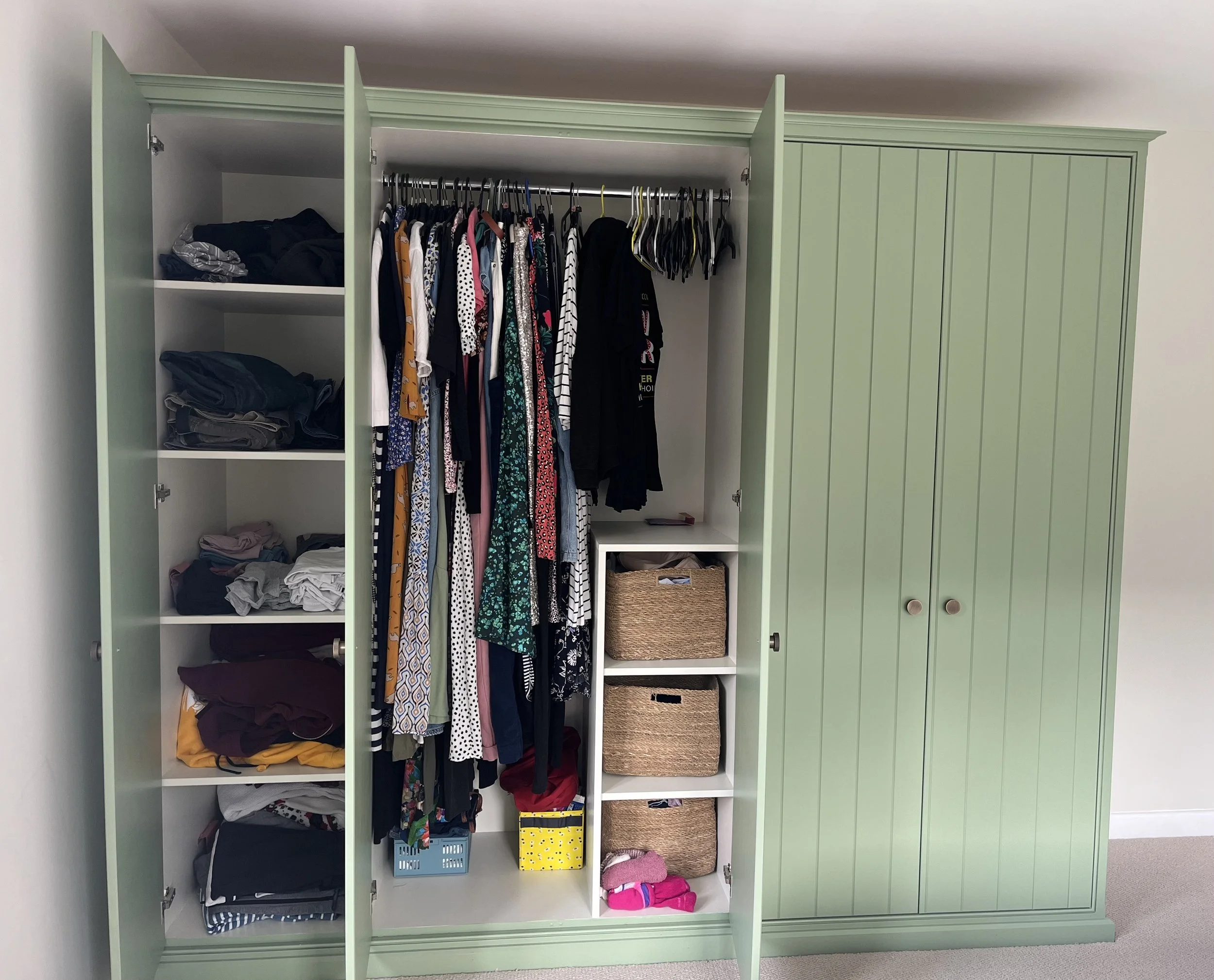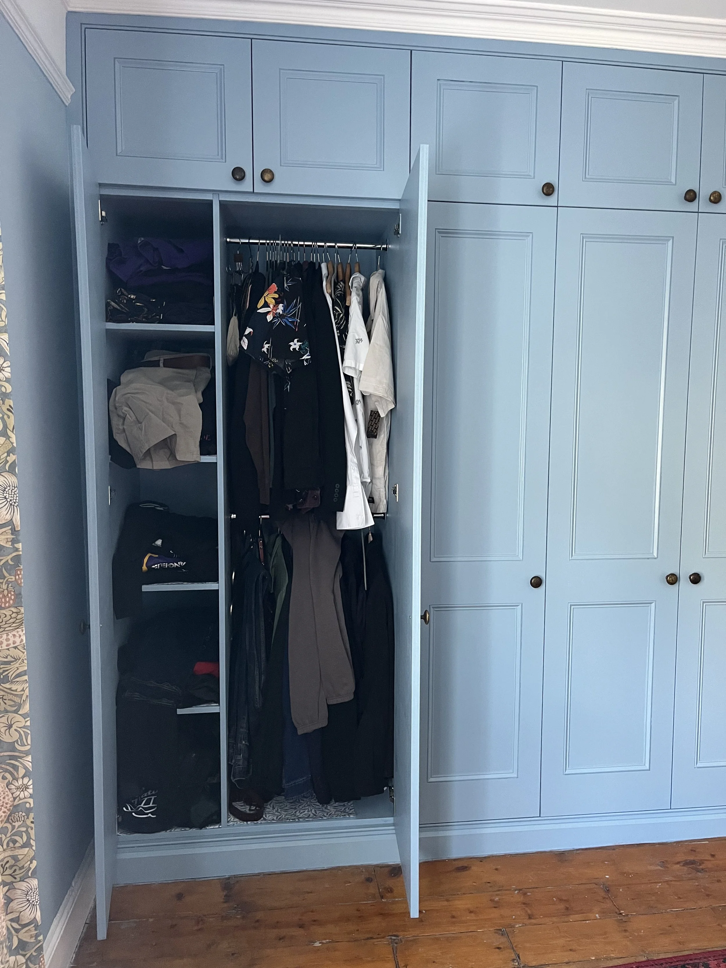 We specialise in bespoke fitted wardrobes, made on site, to fit your room. The wardrobes can made to suit different styles; modern, contemporary, minimalist, Victorian, Edwardian, Regency or Georgian. The insides of our wardrobes have bespoke shelving and rails, and can include concealed plain chest of drawer units, all designed to suit your own needs.