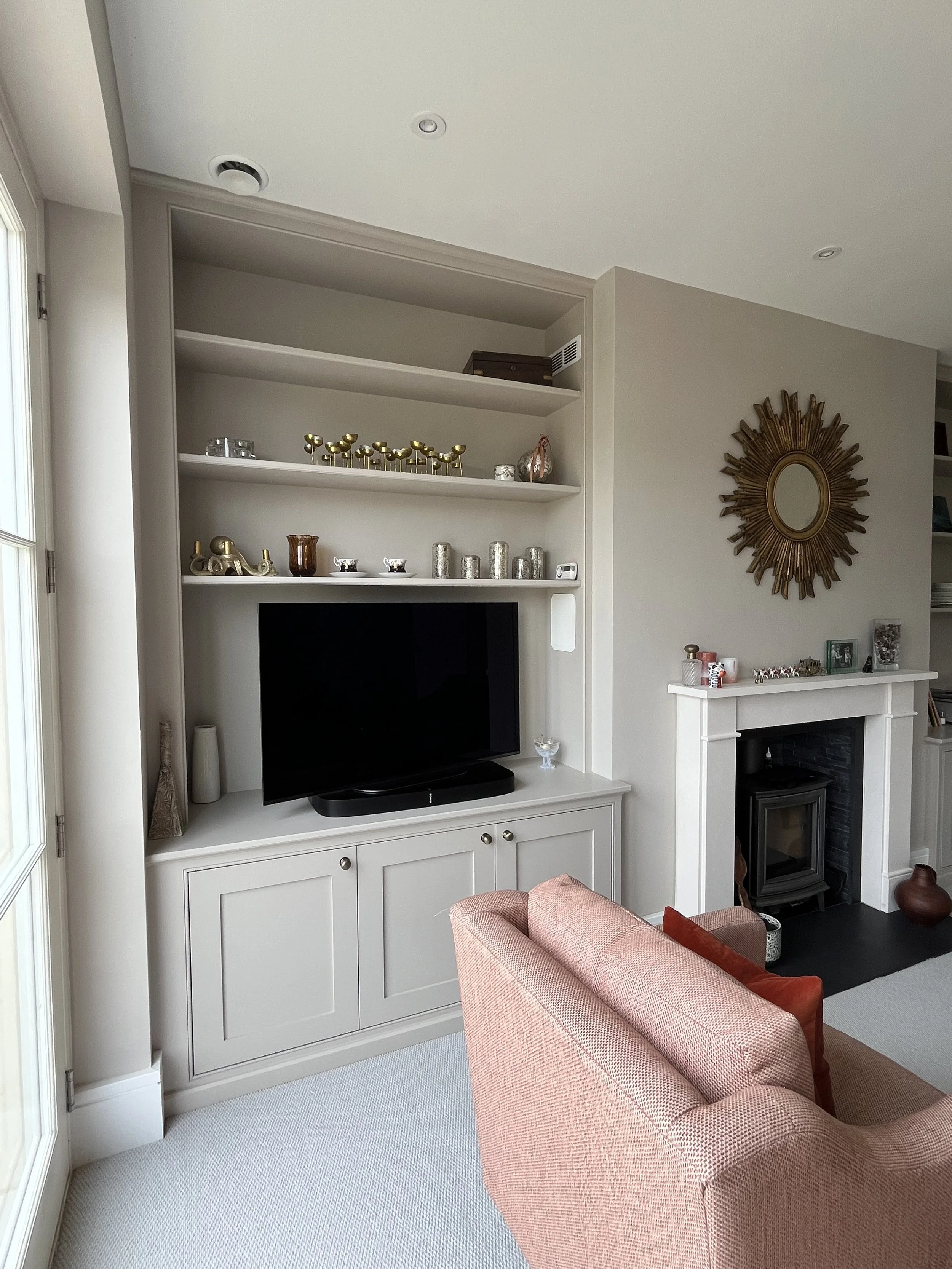 We specialise in bespoke cabinetry, made on site, to fit any space. Our alcove units, wardrobes, media units and shelving can be made in different styles; modern, contemporary, minimalist, Victorian, Edwardian, Regency or Georgian. They can be painted in any colour to fit your existing scheme.